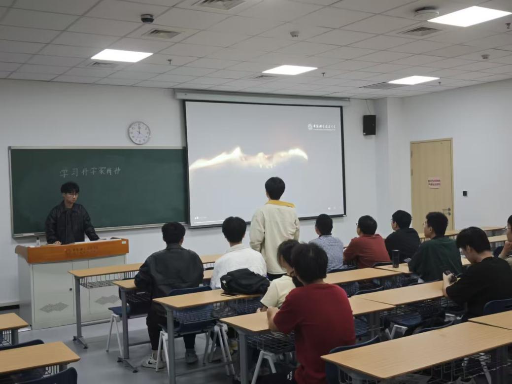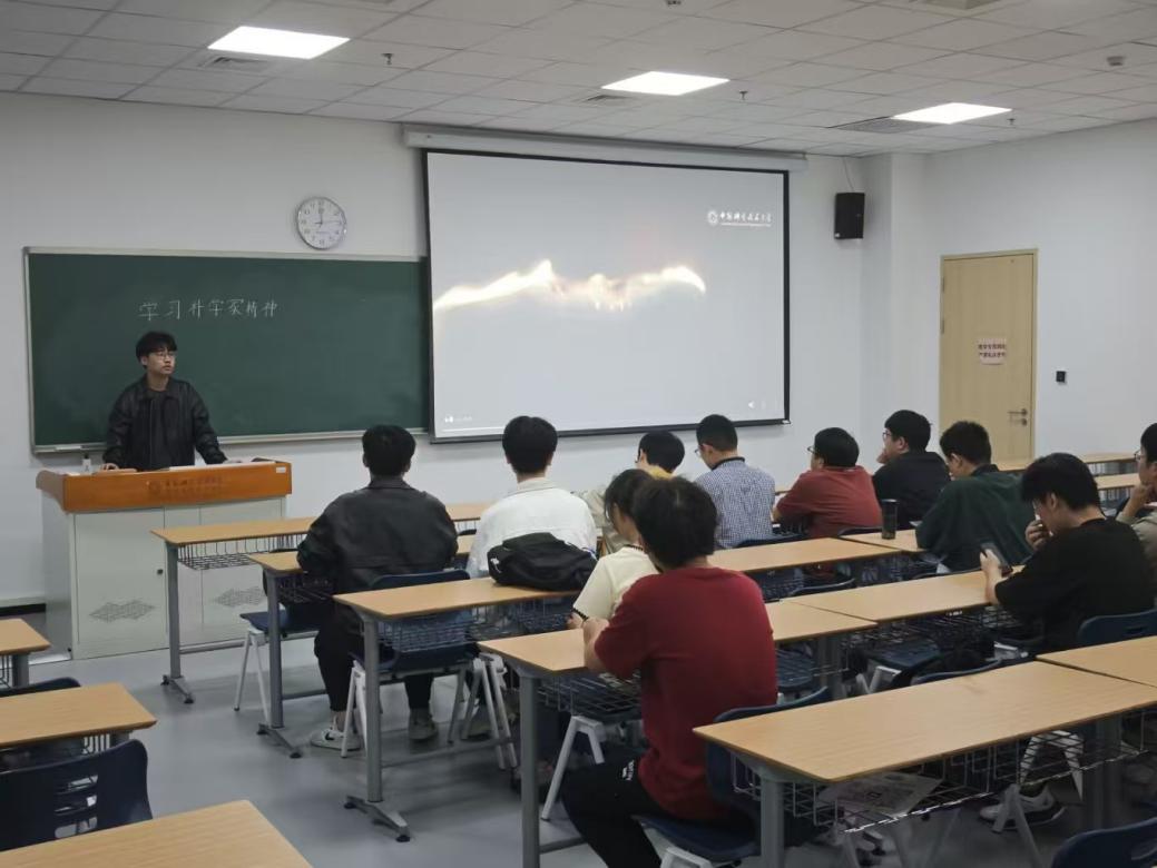 最后,申梓忻总结道:“今晚的观影活动,不仅是一次视觉的享受,更是一次心灵的洗礼。从郭永怀先生的赤子之心,到无数归国科学家的家国情怀,再到科研工作者对真理的不懈追求,这些影片为我们勾勒出了一幅幅感人至深的科学家群像。他们用一生诠释了什么是‘国家利益高于一切’。作为中国科大的学子,我们生逢其时,重任在肩。希望全班同学能以此次团日活动为契机,将科学家精神内化于心、外化于行,在未来的学习和科研道路上,勇担使命,砥砺前行,努力成长为堪当民族复兴重任的时代新人。”