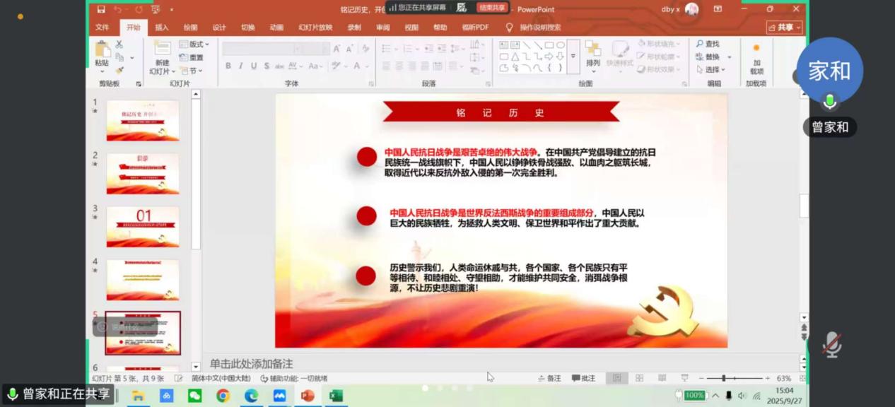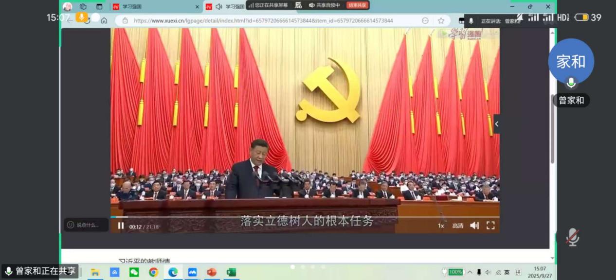 2025年9月27日下午,软件学院软件系统设计第二党支部开展了主题为“铭记历史,开创未来”党日活动。此次活动由党支部副书记曾家和同志主持,全体党员同志通过腾讯会议线上参会。