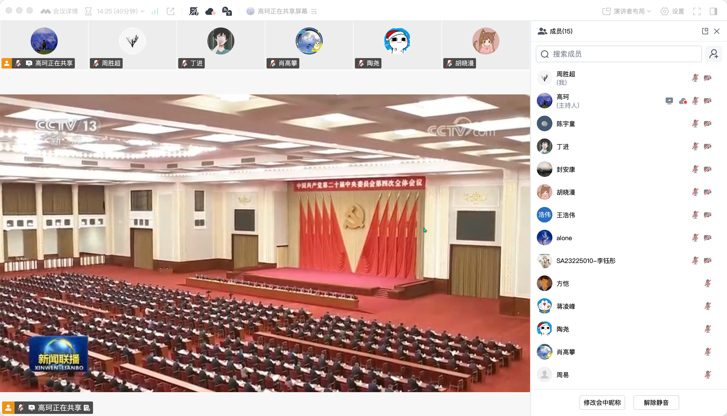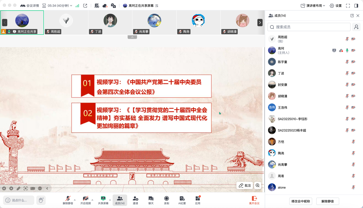 2025年11月23日,软件学院软件系统设计第一党支部通过腾讯会议线上召开11月份主题党日学习活动,专题学习党的二十届四中全会精神。会议由党支部副书记高珂同志主持,支部全体党员参加。