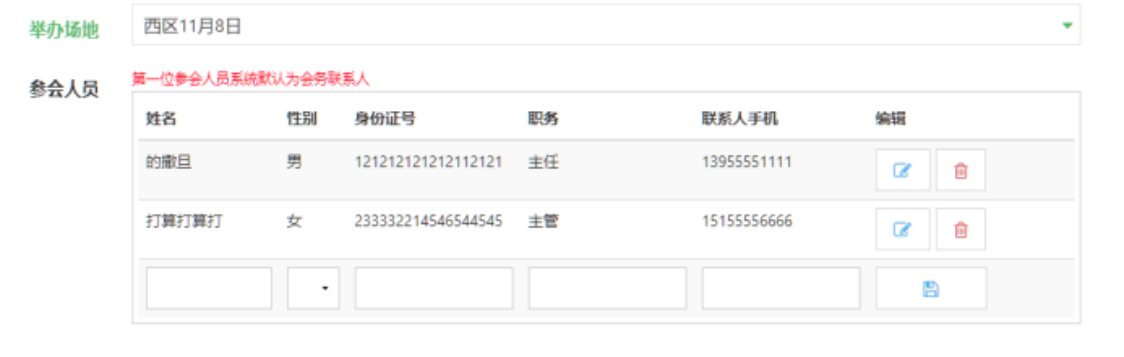 4.填写参会人员信息(姓名、身份证号、手机号缺一不可,此为入校的关键凭据!)